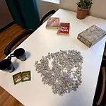 La pièce dispose d'un coin salon et d'une cuisine entièrement équipée, ainsi que de conforts tels qu'une climatisation. Profitez du confort d'une salle de bain dans l'appartement, équipée des draps de bain. Une toilette séparée, une douche et une machine à laver sont également disponibles.